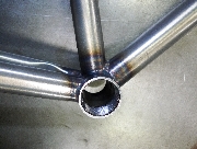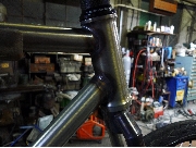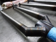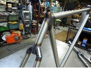 フロントフォークとシートステイはともに肩を溶接で継いだ独特のデザイン。